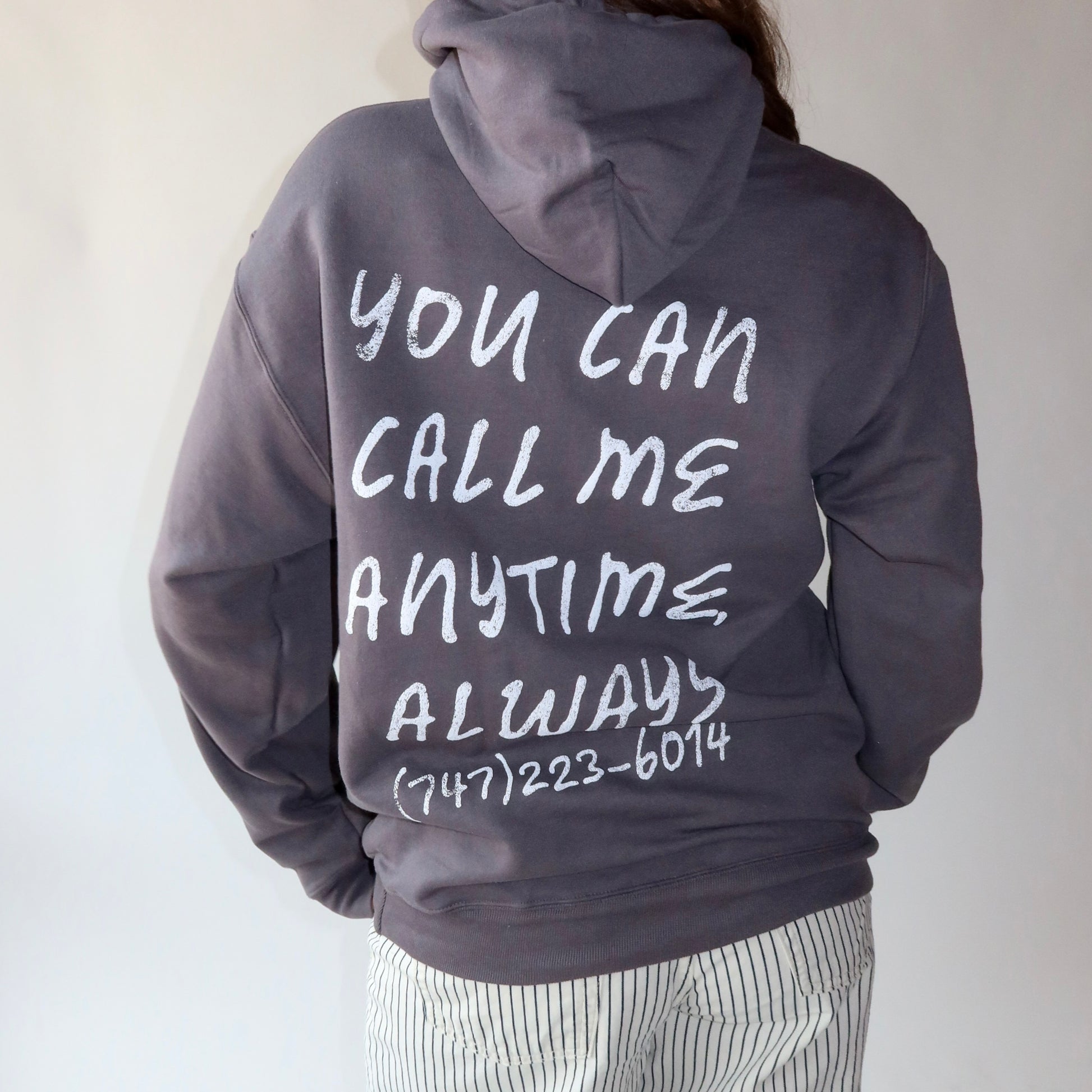 White puff ink on dark gray hoodie, crewneck, standard tee, or baby tee