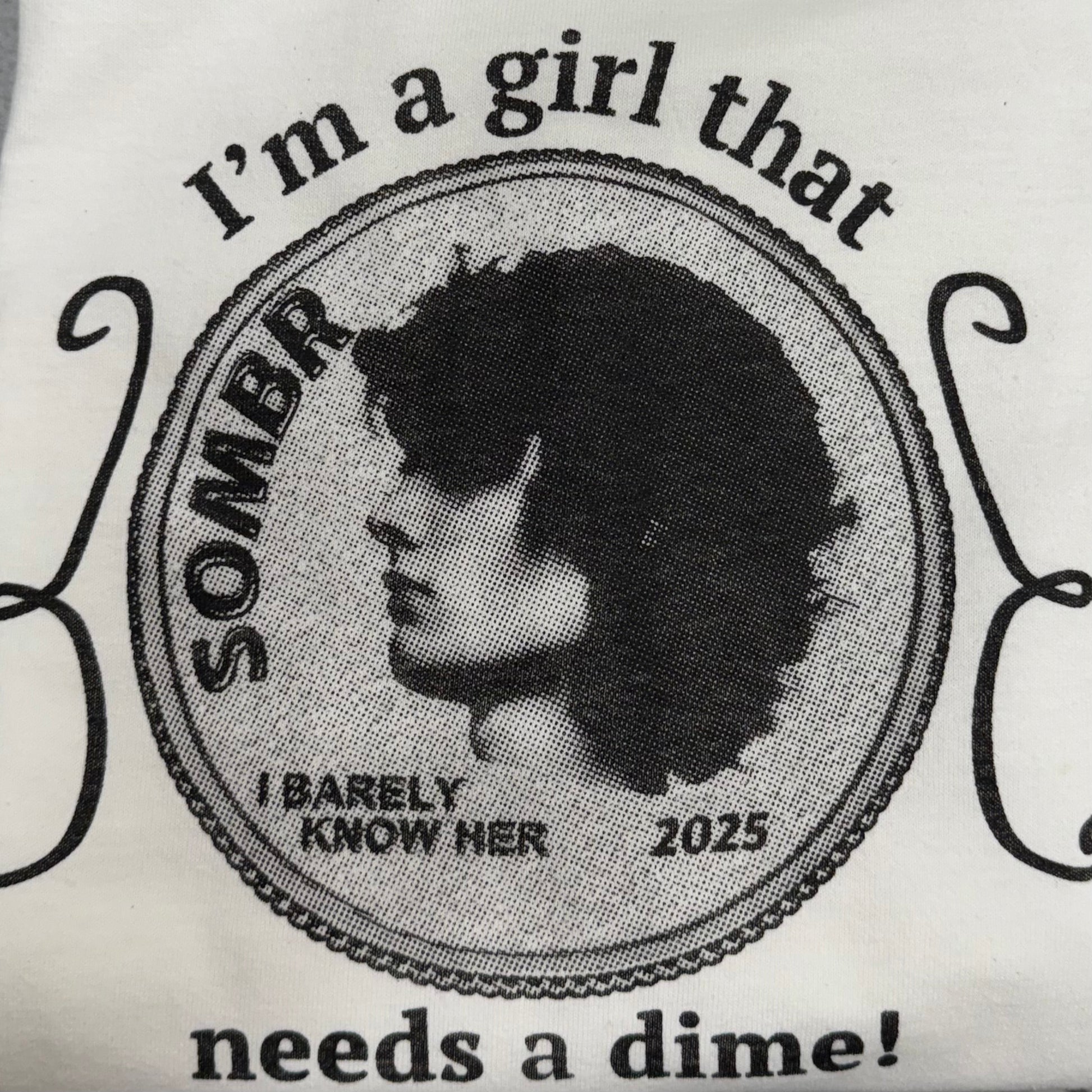 -Black ink on white standard tee or baby tee, see size guide for reference