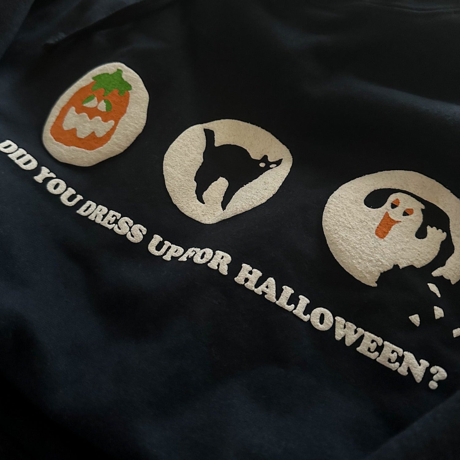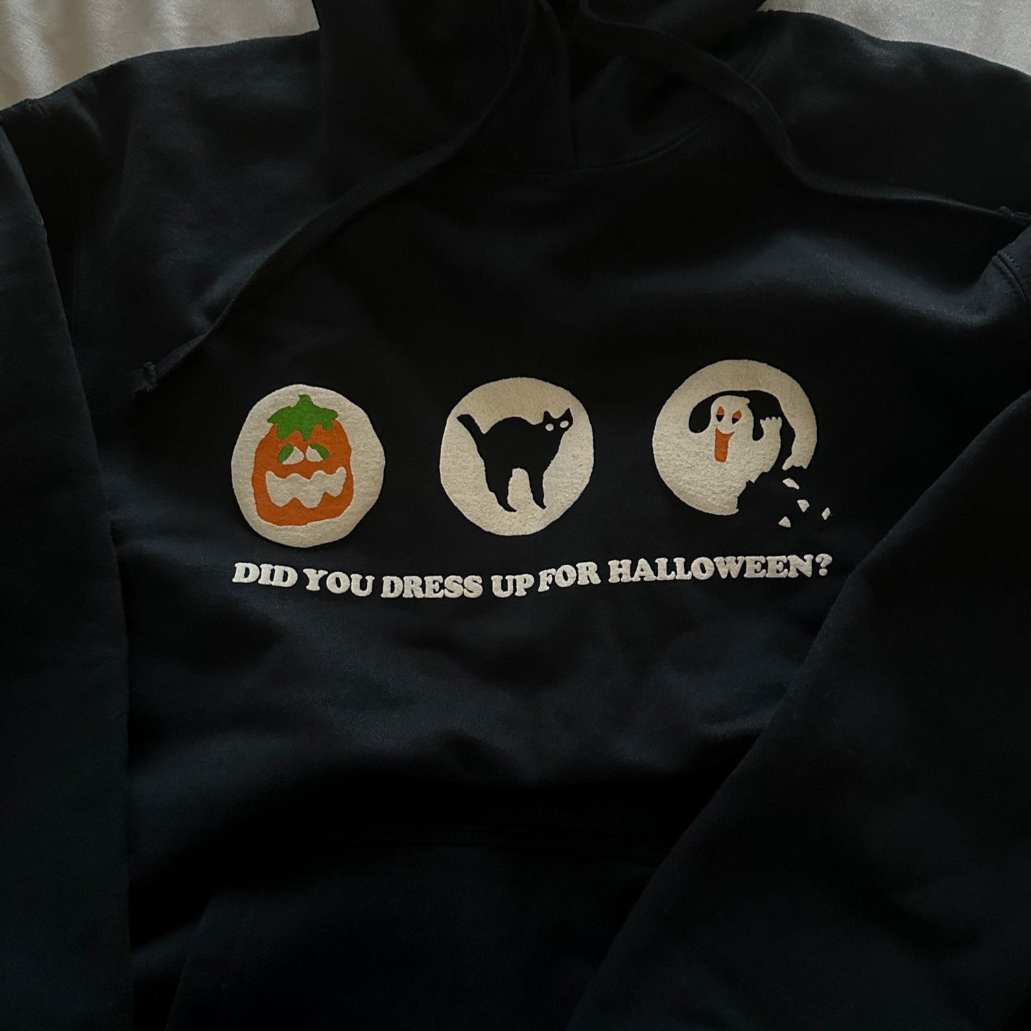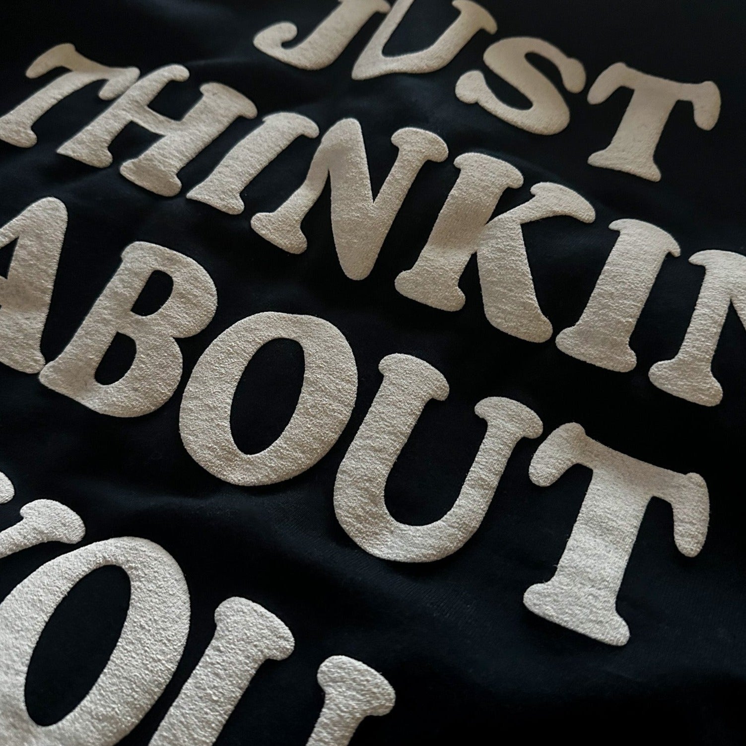 -white puff ink on black hoodie